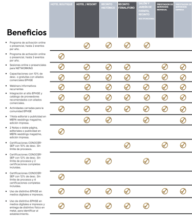 Espacios que aplican de forma directa la atención al cliente como: Hoteles, restaurantes, espacios para eventos, así como expertos en hospitalidad y eventos que desean destacarse y diferenciarse del mercado y que han cumplido con los lineamientos y procesos de evaluación.